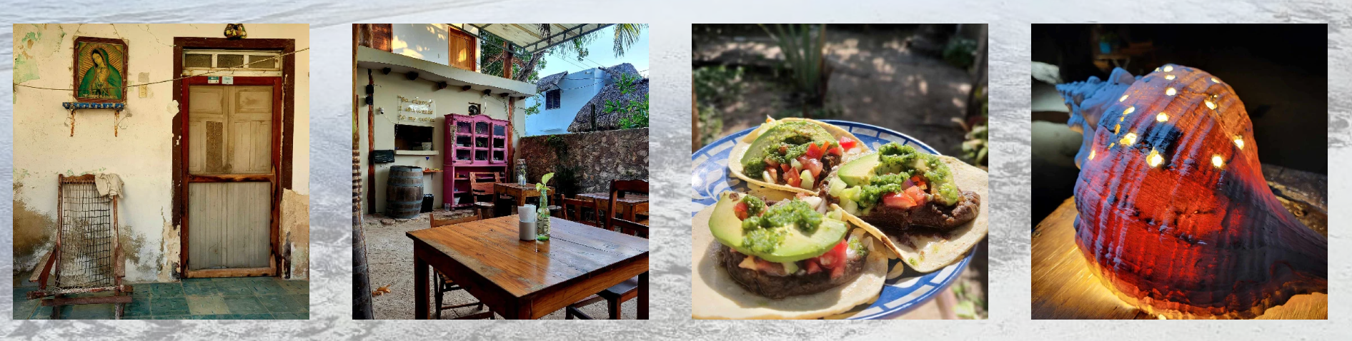 Na Holboxe ťa každý deň čaká menu plné detoxikačnej stravy, pripravenej s láskou od Evky Mamrillovej, a vo Valladolide môžeš vyskúšať pravú mexickú kuchyňu podľa pôvodných receptov aj vo vegetariánskej verzii, skutočný gastronomický zážitok.